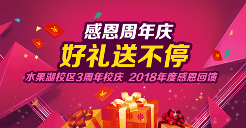 福利四:11月繳費(fèi)的新老學(xué)員均可參與12月23日校慶當(dāng)天的抽獎活動。繳費(fèi)金額每滿10000元即可抽取一次現(xiàn)金紅包,金額188-588元不等,100%中獎。