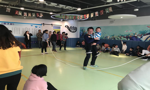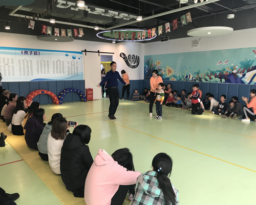 通過集體跳長繩,不僅讓家長回憶了童年,更是真切的體會到了其中蘊含的感統(tǒng)知識,跳長繩對于發(fā)展孩子的協(xié)調、靈敏以及大運動的發(fā)展都有很好的促進作用,同時也培養(yǎng)了合作精神。