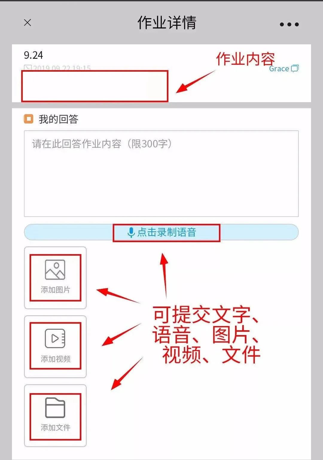 在界面可以提交作業(yè),支持添加圖片、視頻、文件等。