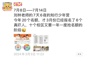 這一打聽才知道,原來是去年參加過成長(zhǎng)營(yíng)的家長(zhǎng),一看到今年成長(zhǎng)營(yíng)消息出來,半數(shù)的家庭選擇提前報(bào)名,今年決定再去成長(zhǎng)一次!